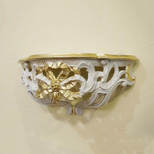 イタリア製 壁掛け コンソール ホワイト ゴールドリボン インテリア雑貨 おしゃれ 置物