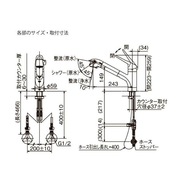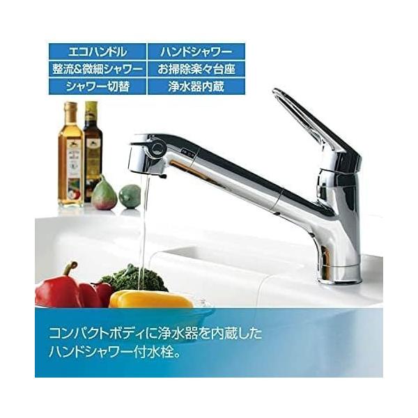 キッチン用水栓 浄水器内蔵シングルレバー混合水栓 ハンドシャワー付 リクシル LIXIL [RJF-771YNA] ワンホールタイプ エコハンドル仕様 寒冷地仕様 上面施工