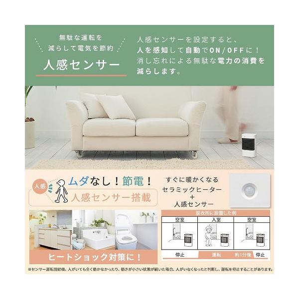 電気ファンヒーター セラミックヒーター 人感センサー付 ホワイト [YKT-S640GM(W)] 強弱2段階切替 転倒時自動オフ 温風 ユアサプライムス