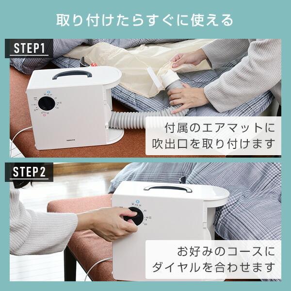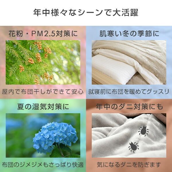 ●2つのコースで使い分け!冬コース(温風運転)で冷たいふとんを温風でふかふかに!夏コース(温風→送風運転)で乾燥後や日干しした布団の熱取りに!