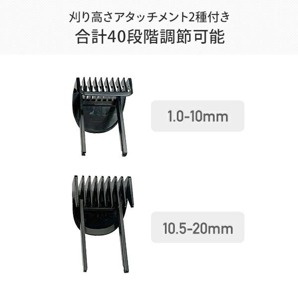 ●刈り高さアタッチメント2種付きで、合計40段階調節可能(1.0-10mm 、10.5-20mm)