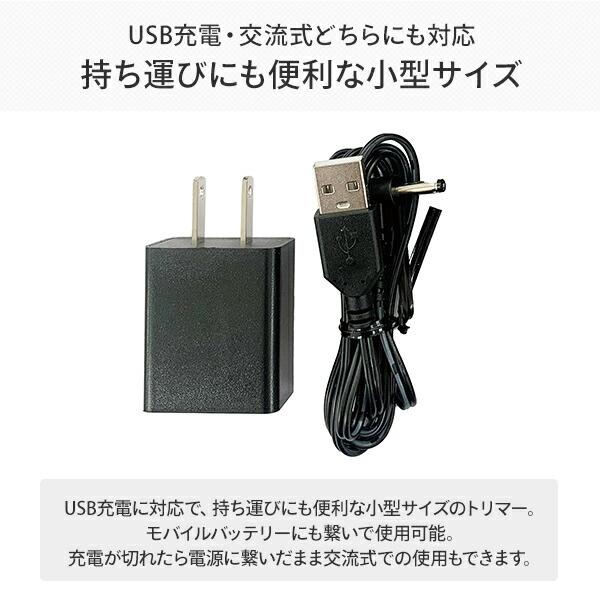 ●USB充電に対応で、持ち運びにも便利な小型サイズのトリマー。モバイルバッテリーにも繋いで使用可能