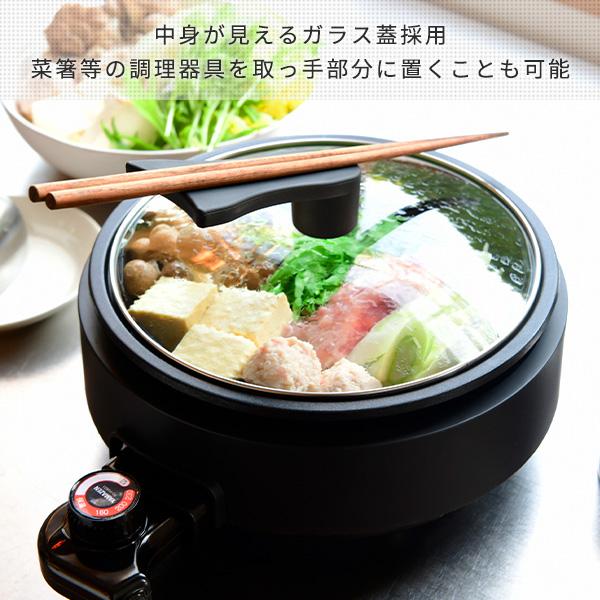 グリル鍋 電気グリル鍋 着脱式 蓋が自立する ガラス蓋