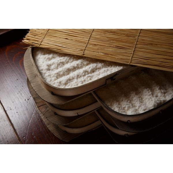 熟練した麹職人が創業以来、頑なに「こうじ蓋製法」で作り続ける自慢の麹です。当店の「手作りこうじ」は、コメの一粒一粒に麹菌が入っているため、自然の甘みがあり雪のように真っ白です。