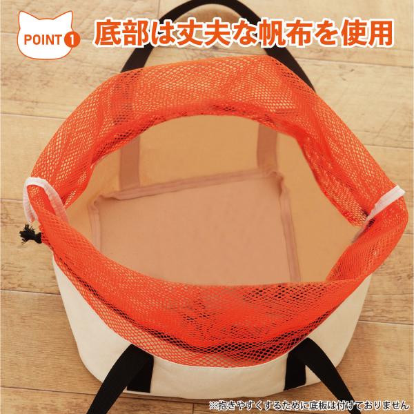材質/メッシュ部:ナイロン、底部:綿、持ち手:ポリプロピレン