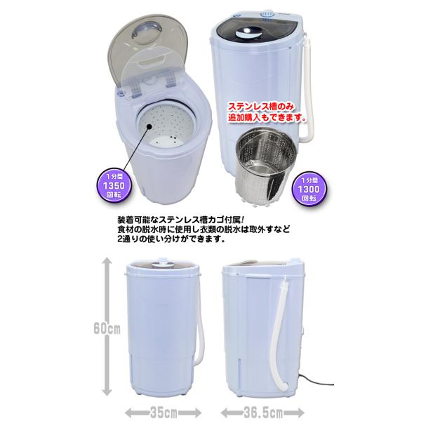 ●大人気の脱水専用機に、野菜が脱水出来るモデルが登場しました。結構時間がかかる野菜の水切り作業がとてもはかどります。ステンレス槽が取り外し可能なので簡単に洗えて清潔に、更にこれまで通り衣類の脱水も出来てしまうマルチモデルです。