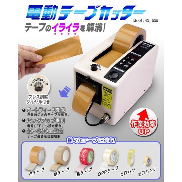 [当社製品保証1年!インボイス対応!] 電動テープカッター 【 No.1000 】 自動 業務用 テープカッター メモリー仕様 各種テープ対応 事務用品 便利 梱包
