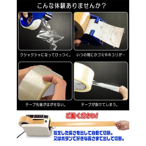 梱包作業の強〜い味方!幅広の透明テープが自動で出てくる!布テープや紙製テープだってもう絡みつかないんです!イライラを解消して作業効率もUP!他店の同類品とお値段比較してみて下さい!
