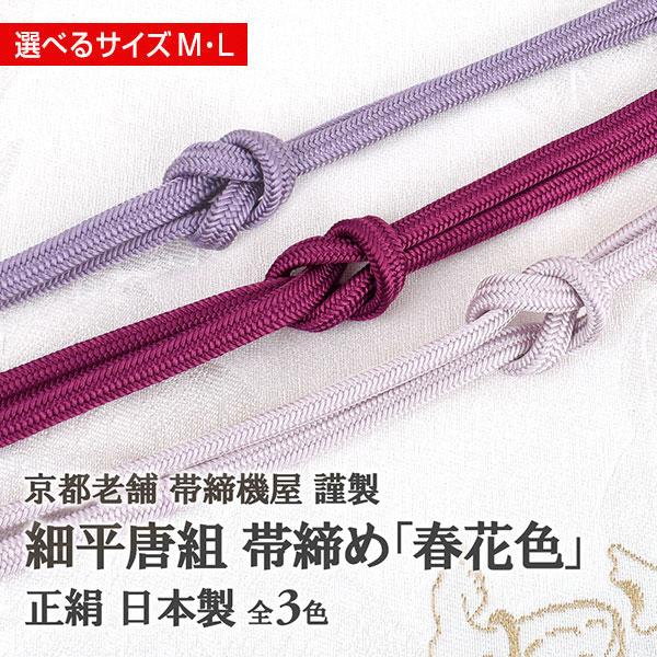 細平唐組 帯締め 京都老舗 帯締機屋 謹製 春花色 赤牡丹/藤/山桜 3色 国産 正絹 7mmスリム帯締め 国産 日本製