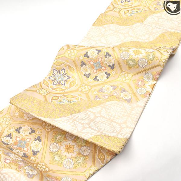 ★本日20時販売開始!★西陣織 老舗 丸勇織物 謹製 “唐織” 丸華文様 袋帯 日本製 【帯専門店おびや】お仕立て代込!送料・代引き無料![商品番号:22051]
