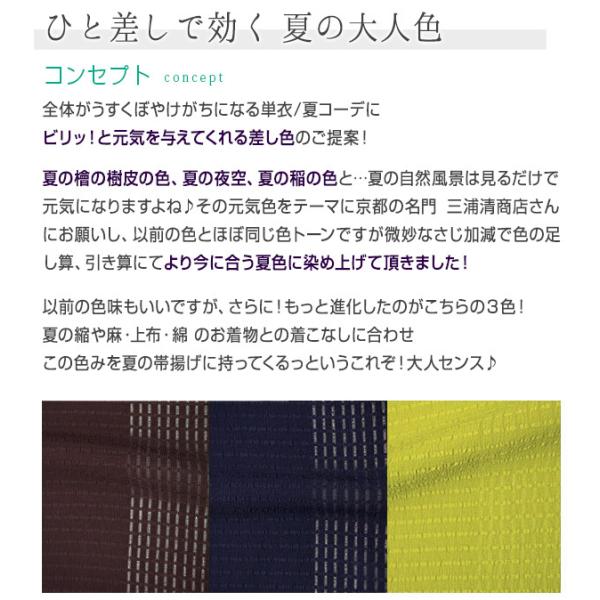 帯揚げ 夏・単用 京都三浦清商店謹製 夏絽帯揚げ 夏の差し色 全3色 夏檜皮/夏宙紺/夏の稲 正絹 着付け小物