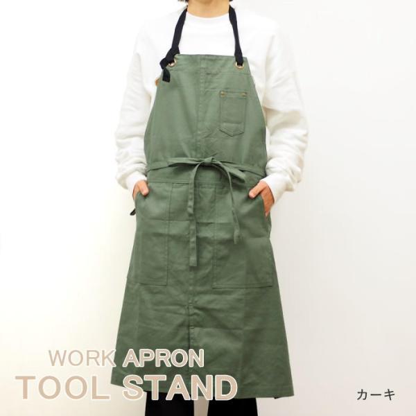 ツールスタンドロングエプロンカーキ ポケット おしゃれ レディース 作業 メンズ