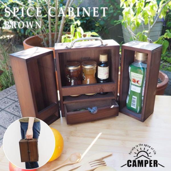 スパイスボックス キャンプ 木製 調味料入れ 持ち運び スパイスケース CAMPER スパイスキャビネット