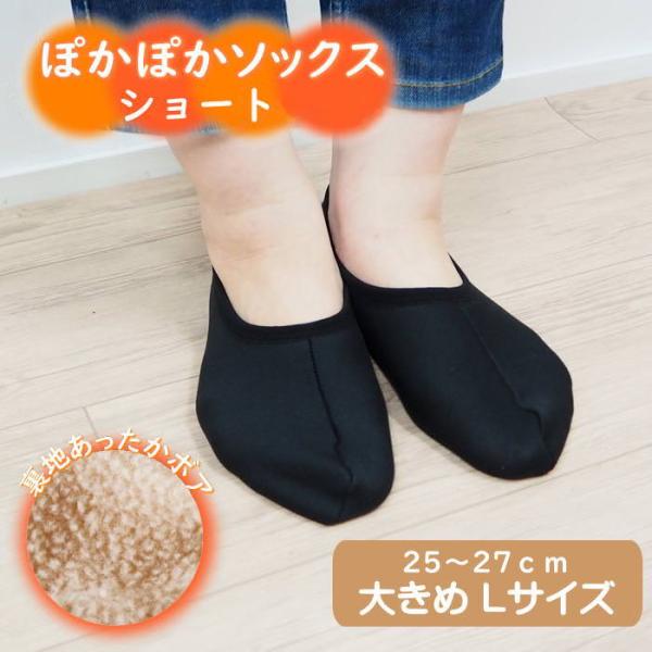 ぽかぽかそっくす ショート(L) Lサイズ ブラック 靴下 レディース メンズ おしゃれ ルームソックス もこもこ 冬 カバー 滑り止め 暖かい 防寒