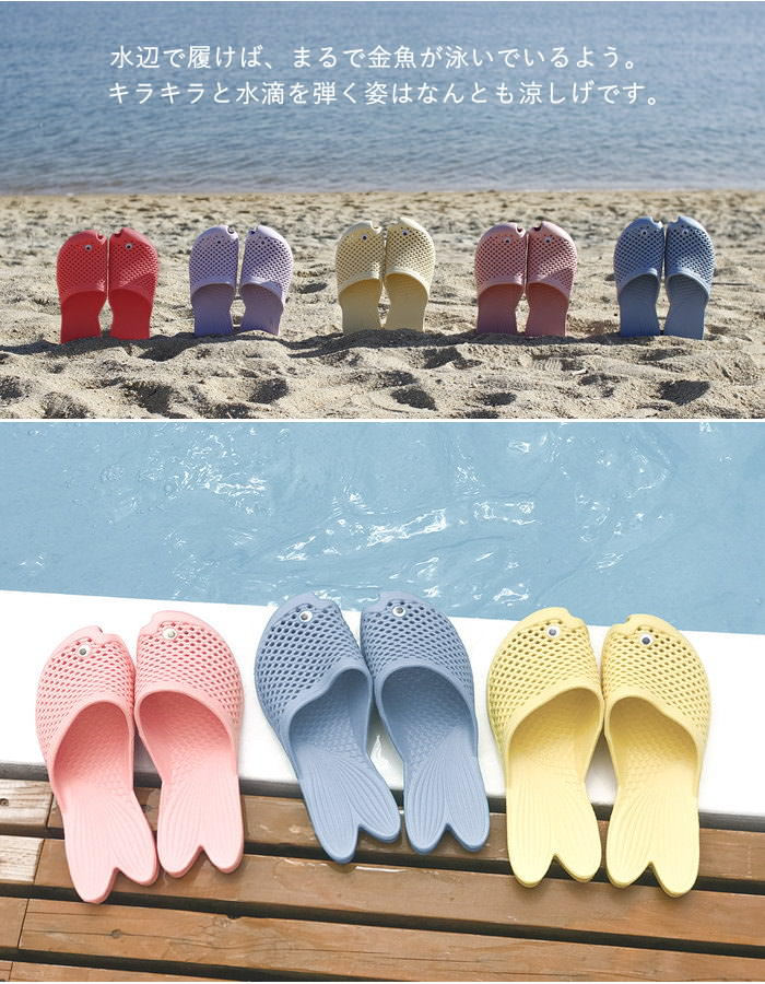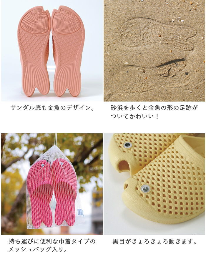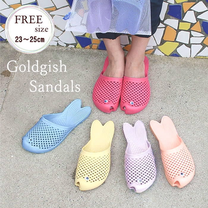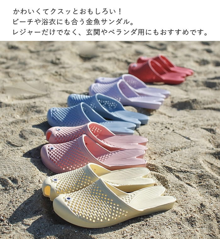 サンダル レディース ビーチサンダル 金魚サンダル おしゃれ 履きやすい 軽量 フラット フリーサイズ 23〜25cm 靴 ぺたんこ つっかけ スリッパ 軽い EVA 歩きやすい 玄関 海 川 海水浴 ビーチ プール 洗える アウトドア ベランダ かわいい 魚 ゴールドフィッシュ SOW