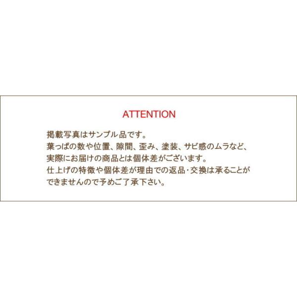 ※掲載写真はサンプル品です。葉っぱの数や位置、隙間、歪み、塗装、サビ感のムラなど、実際にお届けの商品とは個体差がございます。仕上げの特徴や個体差が理由での返品交換は承ることができませんので予めご了承ください。