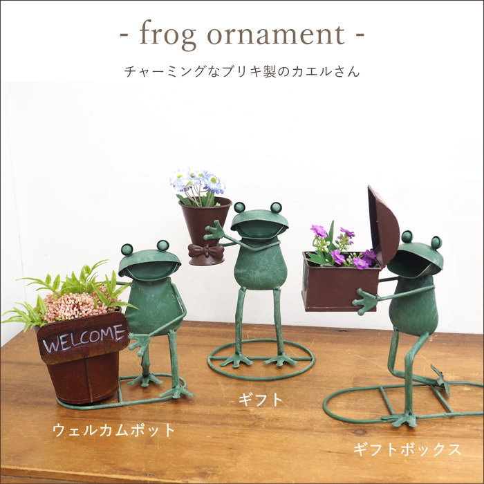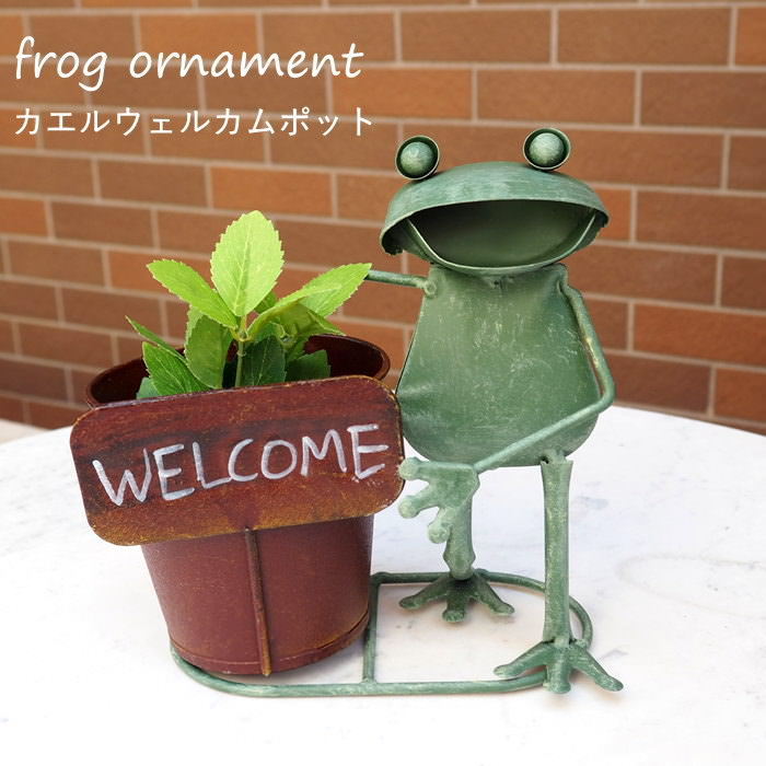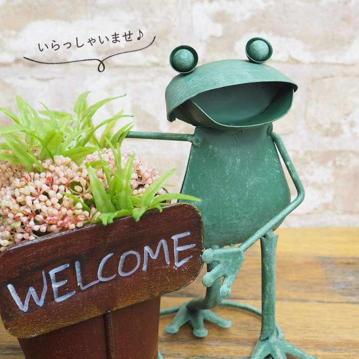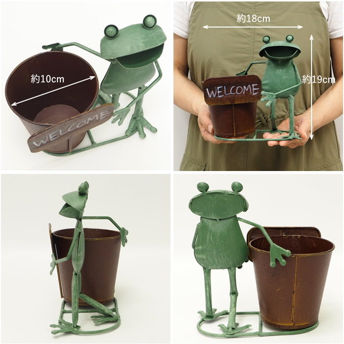 プランター カエル 植木鉢 ブリキ 蛙 置物 雑貨 オブジェ オーナメント ディスプレイ 玄関 カフェ 庭 店舗 飾り かわいい 鉢 ポット カバー おしゃれ 村田屋産業