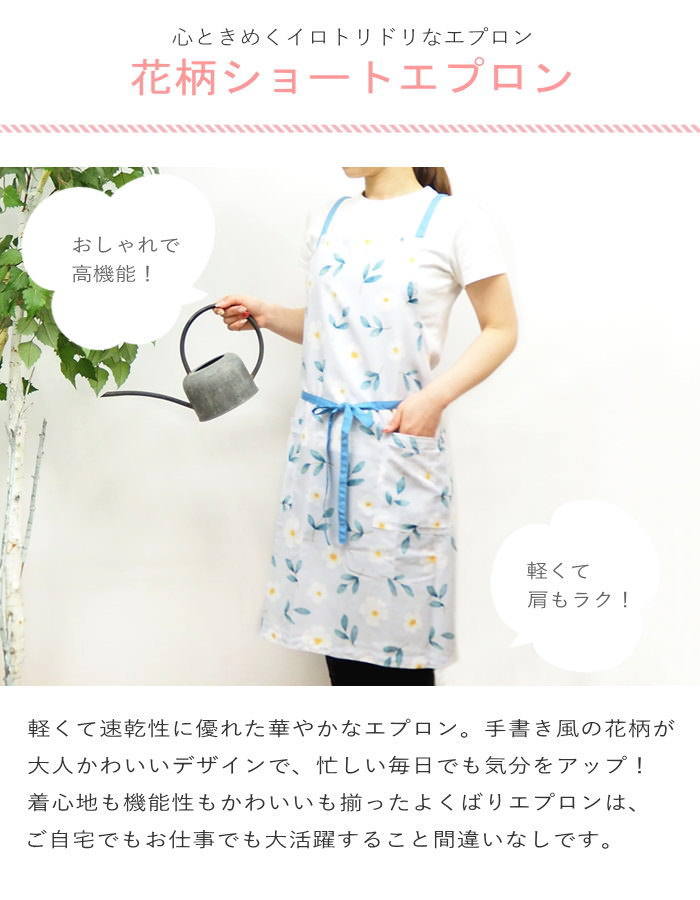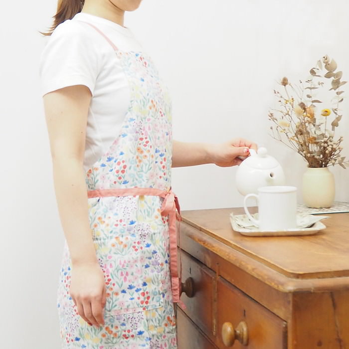 ●忙しい毎日でも気分をアップ!手書き風の花柄が大人かわいいエプロン。