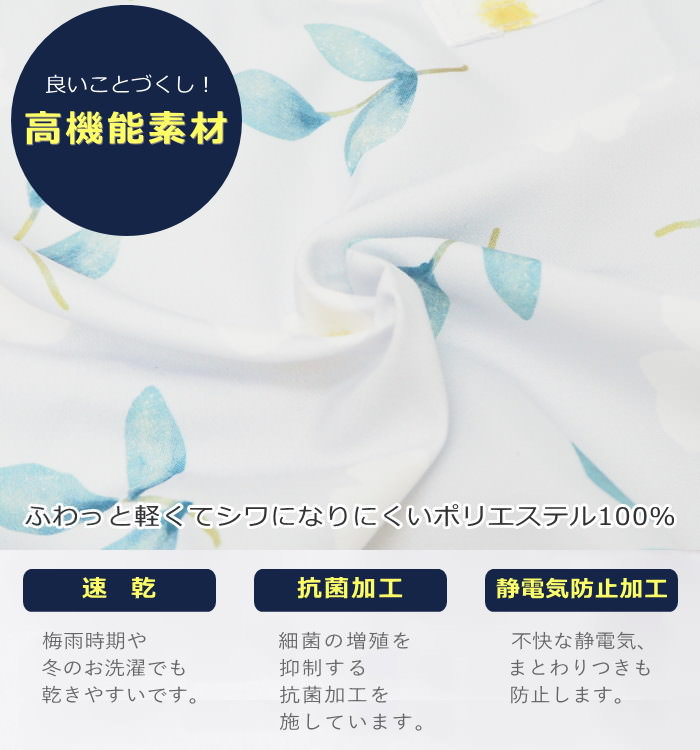 抗菌加工、静電気防止加工は洗濯によって効果が低下していきます。あらかじめご了承ください。
