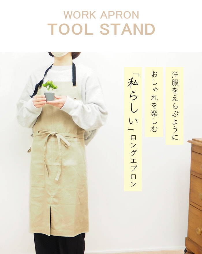 ツールスタンドロングエプロンカーキ ポケット おしゃれ レディース 作業 メンズ