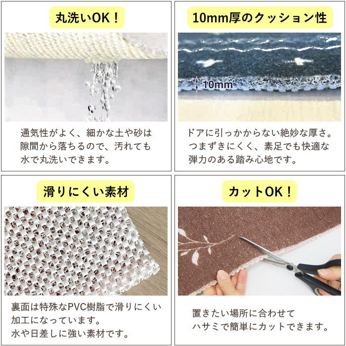 ●ドアに引っかからない10mmの厚さで、つまずきにくく快適な踏み心地です。