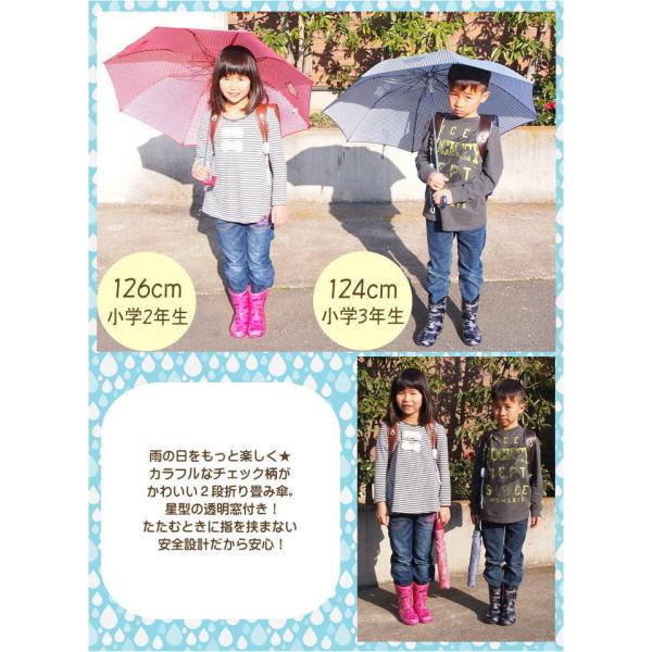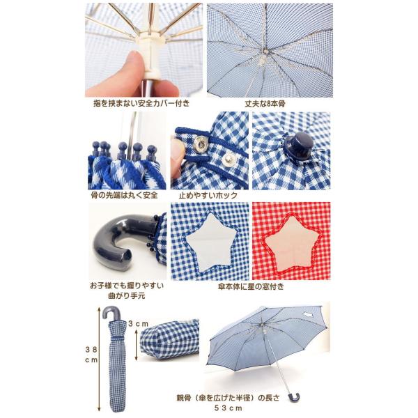 ●カラフルなギンガムチェック柄がかわいい子供用2段折り畳み傘。ポイントは星型の透明窓!