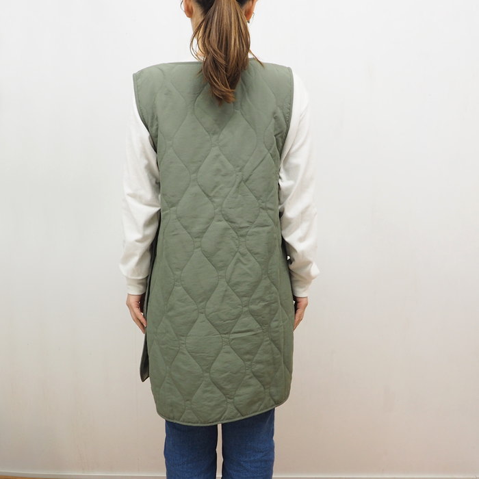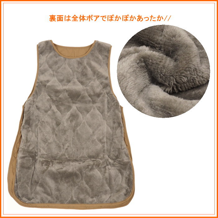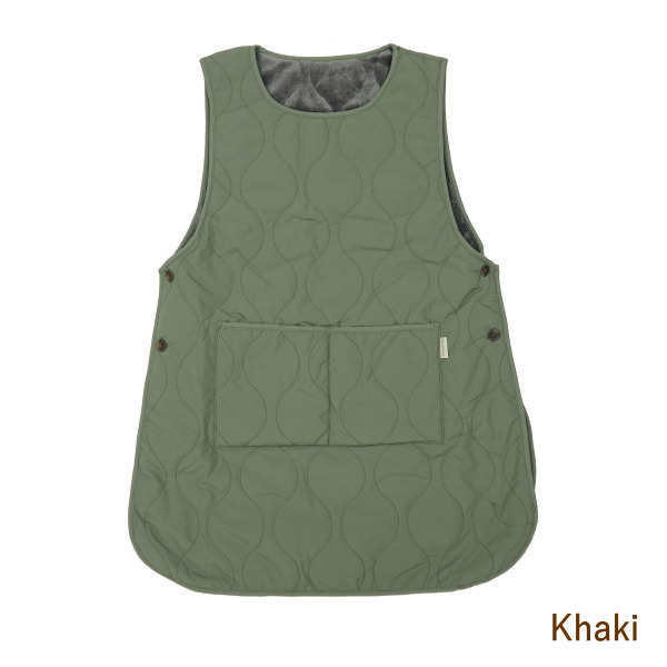 ●表撥水×裏ボア 無地キルティングノースリーブエプロン Khaki