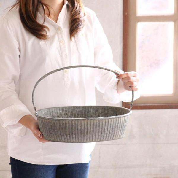 ブリキハンドル付きオーバルトレイ Sサイズ プランター トレイ トレー 鉢 カバー ポット ブリキ 持ち手 インテリア 飾り おしゃれ 雑貨