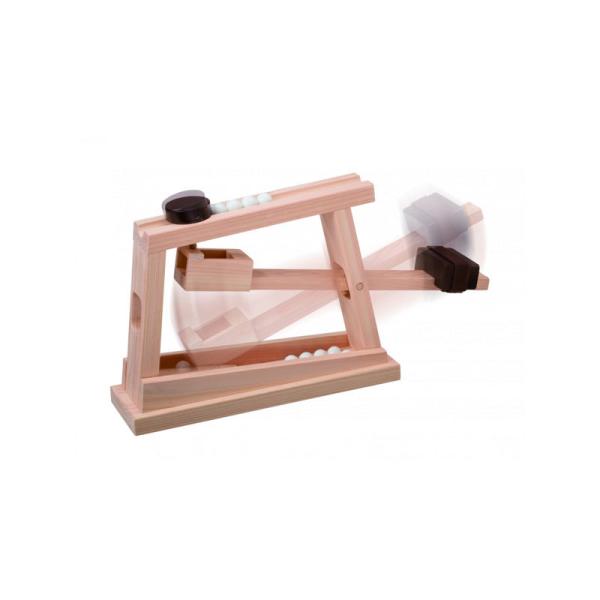 日本古来の鹿威しを国内ヒノキとビー玉を使った玩具! 日本古来の鹿威しを国内ヒノキとビー玉を使い、玩具として表現。 重りのパーツの位置を調整することによって、ビー玉が繰り返し落ちていきます。 位置によっては落ちなかったり、2個落ちたりする、理化学的学習玩具です。 【サイズ】 42.5 × 9 × 23 cm 【対象年齢】 3歳〜 【生産地】 日本製 【販売元】 平和工業
