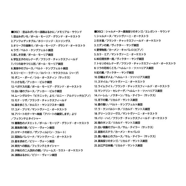 イージーリスニングの決定版!!数々の名曲150曲がぎっしりつまった6枚組! 「恋はみずいろ」、「黒い瞳」、「エデンの東」、「80日間世界一周」、「愛情物語」、「星空のブルース」、「夜空のトランペット」、「夜霧のしのび逢い」、「闘牛士のマンボ」、「エーデルワイス」等々、 LP時代の幕開けとともに次から次へとポピュラーな音楽が誕生。そんな1950年後半からのノスタルジック一杯の名曲を一挙に大放出。懐かしのポール・モーリア、ウェルナー・ミューラー、フランク・プウルセル、レイモン・ルフェーヴル、ヘンリー・マンシーニ、パーシー・フェイス等が勢揃い。 ロマンティックな旋律を盛り上げるダイナミックなオーケストラ・サウンド、そしてピアノやトランペットが華麗に響きあう贅沢な音楽空間に浸ってください。映画音楽、ラテン、ポップス・ヒット曲、セミ・クラシック他様々なジャンルの音楽が流麗な演奏で流れ出てきます。 【ディスク枚数】 6枚組 【収録曲数】 全150曲 【付属品】 解説書付き / 化粧ケース入り 【販売元】 ビクターエンタテインメント