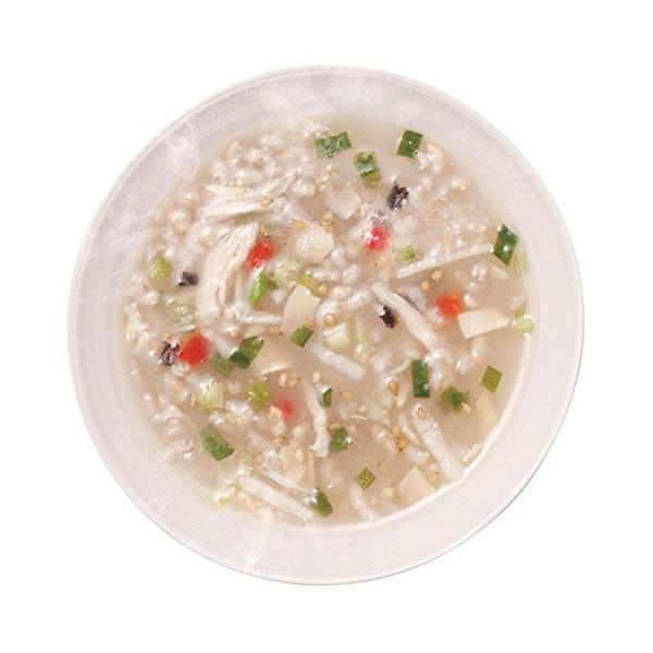 チキンエキス国内製造、食塩、でん粉、ジンジャーパウダー、チキンオイル、クリーミングパウダー、白菜エキス、砂糖、酵母エキス、高麗人参パウダー、うきみ・具乾燥雑穀玄米、きび、あわ、黒米、食塩、味付鶏肉、乾燥ねぎ、赤ピーマン、塩漬生姜、ごま、調味料アミノ酸等、糊料キサンタン、酸化防止剤ビタミンE、香辛料、トレハロース、一部に小麦・乳成分・ごま・大豆・鶏肉を含む