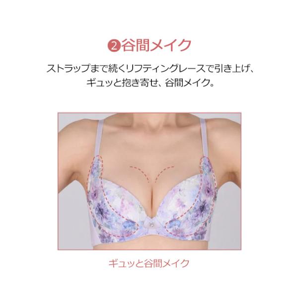 「リフティングレース」 ストラップまで続くレースで引き上げ、ギュッと抱き寄せ、谷間メイク。