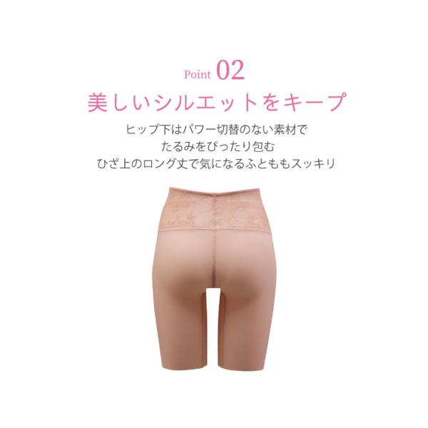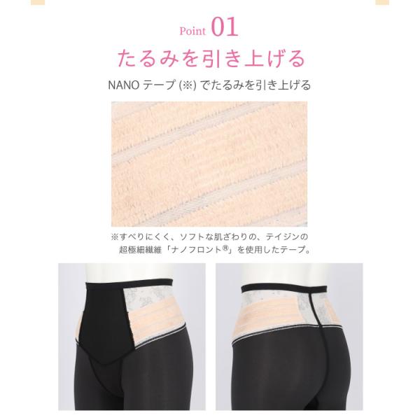 はきこみ丈と「NANOテープ」を『SUHADA 肌リフト』より長くすることで、ふとももからおなか、ふとももからヒップのリフトアップ効果を高め、よりスリムなシルエットを追求する。さらにヒップ下はパワー切り替えのない素材で、たるみをぴったり包み、美しいシルエットをキープ。