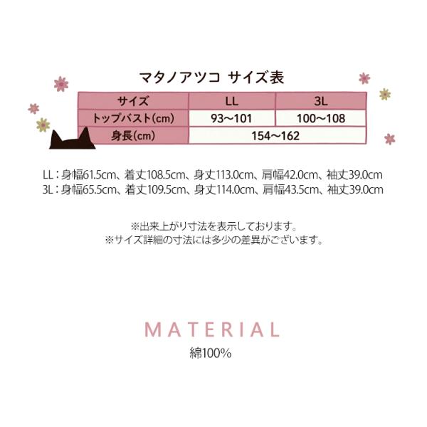 ワコール マタノアツコ ワンピース パジャマ 7分袖 綿100% 黒猫アップリケ ルームウェア 春夏 LL 3L 大きいサイズ 母の日 ギフト