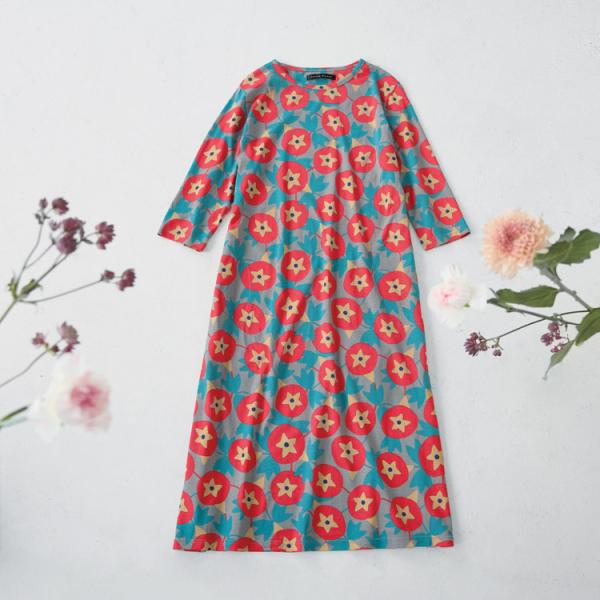 マタノアツコ ワコール ワンピース パジャマ 朝顔 綿100% 半端袖 ML かぶり レディース 春夏 ギフト HNX214 ATSUKO MATANO