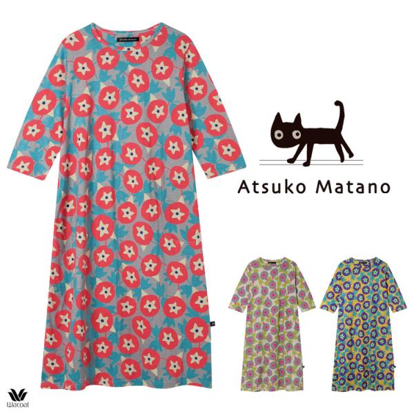 マタノアツコ ワコール ワンピース パジャマ 朝顔 綿100% 半端袖 ML かぶり レディース 春夏 ギフト HNX214 ATSUKO MATANO