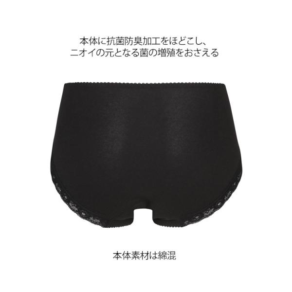 抗菌防臭加工で、ニオイの元となる菌の増殖をおさえるサニタリーショーツ。