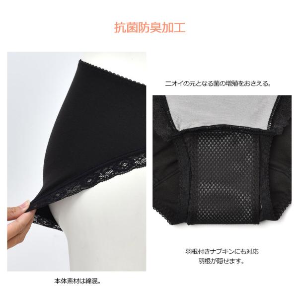 ダブルクロッチ構造で羽付きナプキンにも対応。