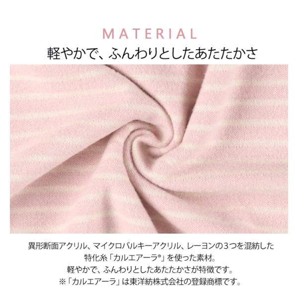 異形断面アクリル、マイクロバルキーアクリル、レーヨンの3つを混紡した 特化糸「カルエアーラR」を使った素材。