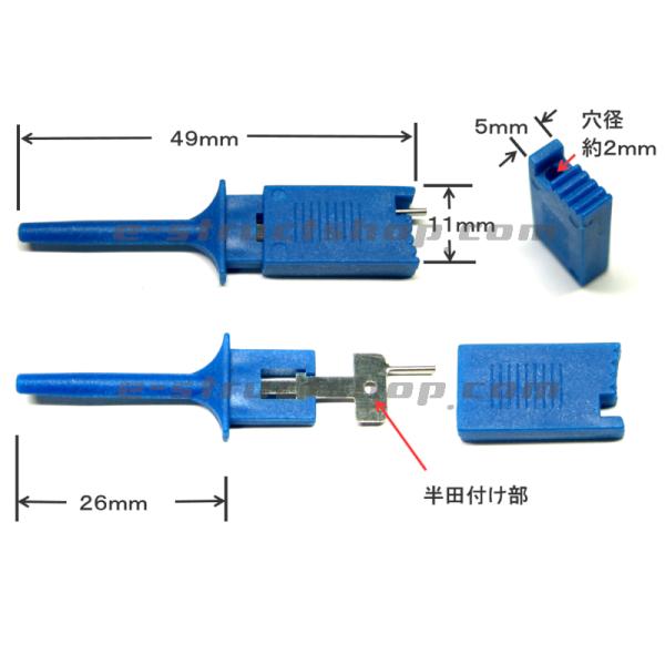 クリップ部がつまむ形状のため、一般的な引っ掛けるフックタイプよりICの足などに付けやすくなっています。
