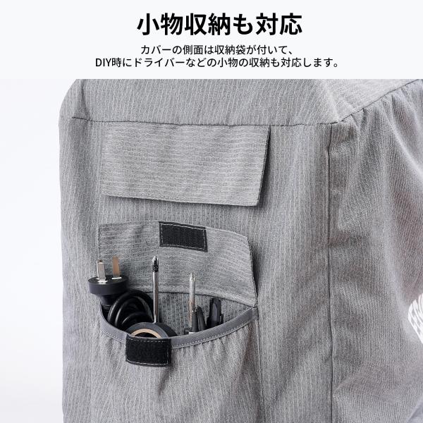 耐摩耗性の高い900Dオックスフォード生地を採用、ビニール素材を使用した一般的なカバーよりも厚く頑丈です。表面に防水加工も施されているので、急な雨でもカバー内に雨が浸み込みにくいです。