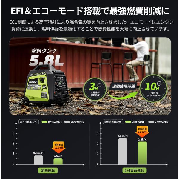 【カバー付セット】 EENOUR 発電機 3500W EFI搭載 電子制御燃料噴射式 セル付き インバーター発電機 並列直列対応 キャスター付 リモコン付 防災 DK4500iAEFI