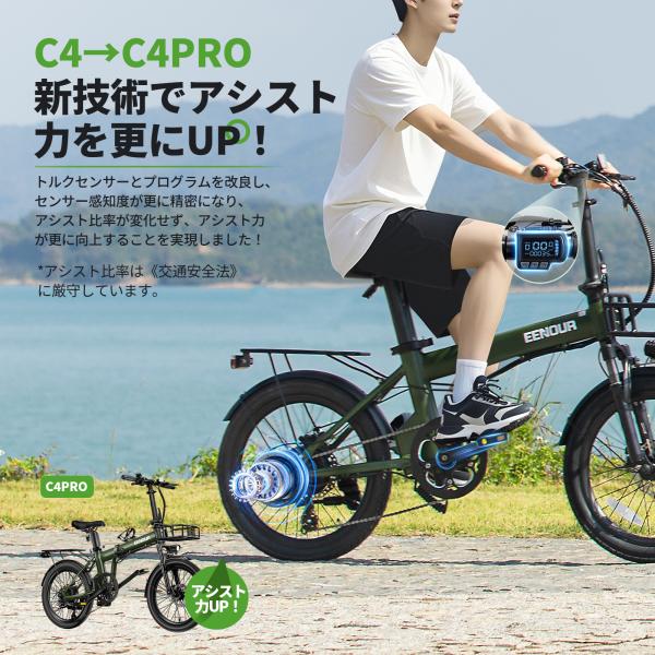 EENOUR 折りたたみ電動自転車 電動アシスト自転車 20インチ シマノ7段変速 コントローラー進化 142km最大走行 5段階アシスト TS型式認定 公道走行 イーノウ C4