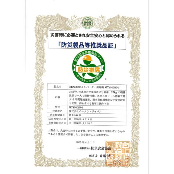 ■EENOUR インバーター発電機 GT4500iO-3