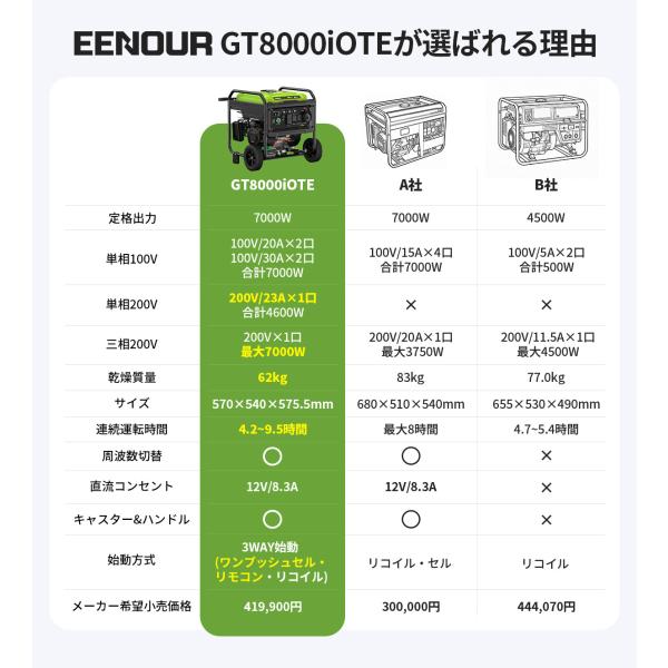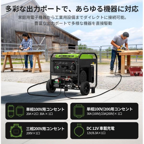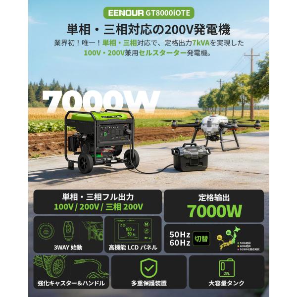 即納 EENOUR 発電機 3相200v 7000W インバーター発電機 移動式 単相100V/200V兼用 セルスタート 50/60Hz 200V発電機 工業用 農業用 GT8000iOTE