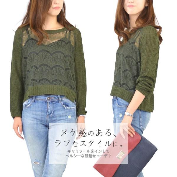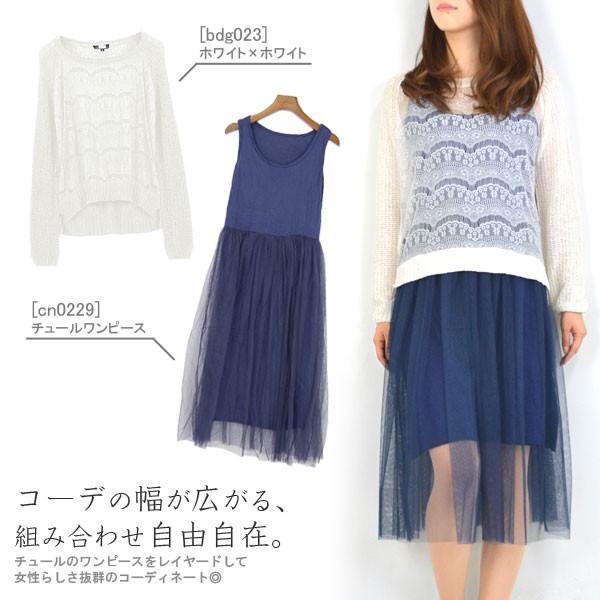 レイヤードを楽しめる♪薄手透かし編みニットソー☆