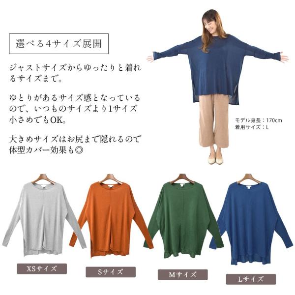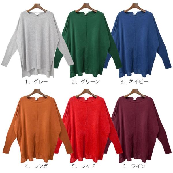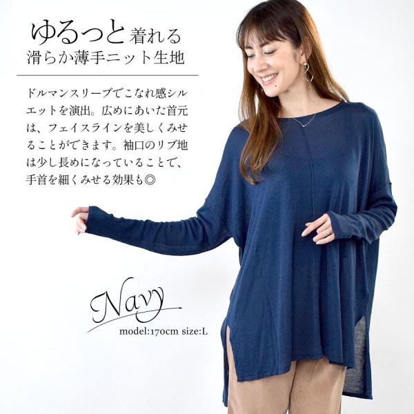 【ドルマン ニット ニットソー レディース 秋 冬 チュニック スリット 長袖 カットソー 大きいサイズ 薄手 ロング ゆったり とろみ ドルマンスリーブ トップス 切り替え 無地 イレヘム シンプル ワイド ゆる感 こなれ感 透け感 カジュアル ラフ】