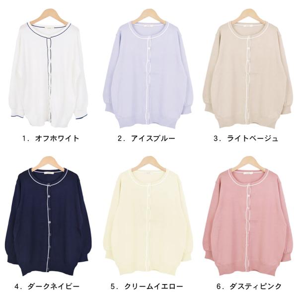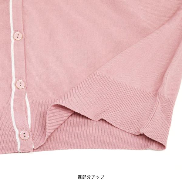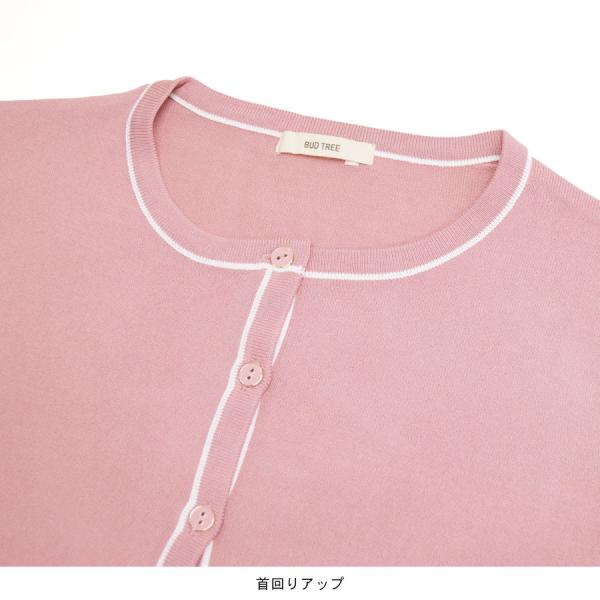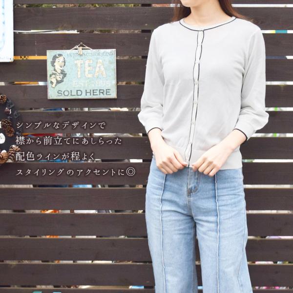カーディガン ニットカーデ 七分袖 レディース トップス 薄手 ライン入り 丸首 クルーネック 羽織り 上着 無地