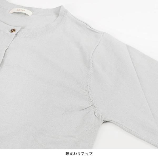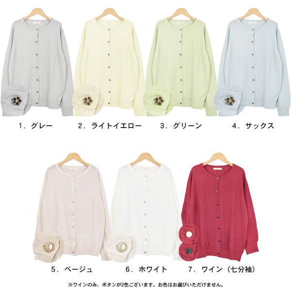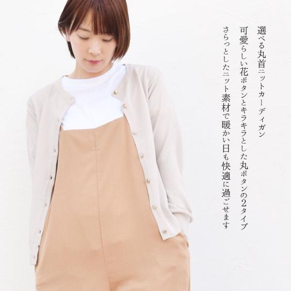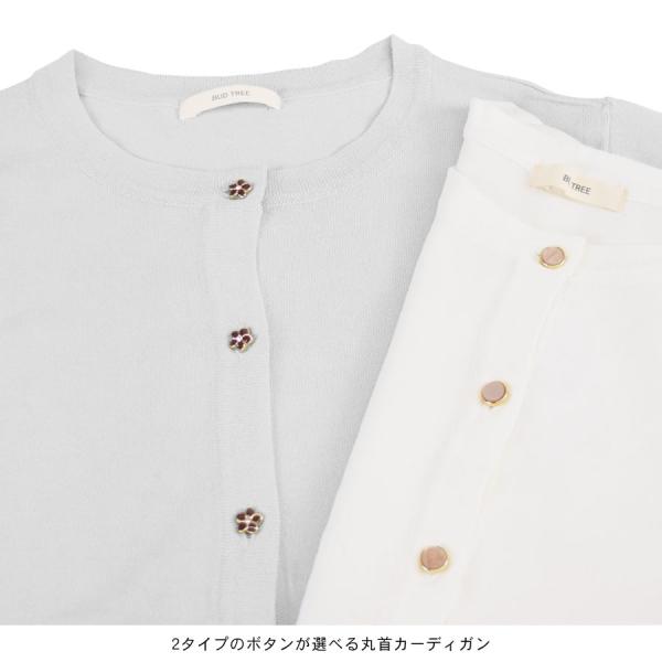 カーディガン ニット レディース トップス 羽織り 上着 薄手 長袖 花ボタン 丸ボタン 丸首 さらさら サマーニット