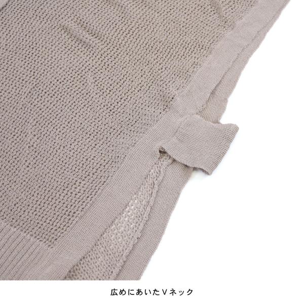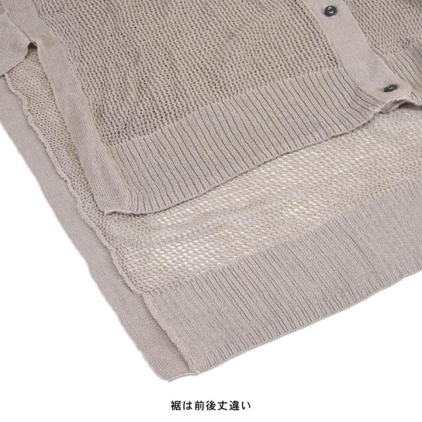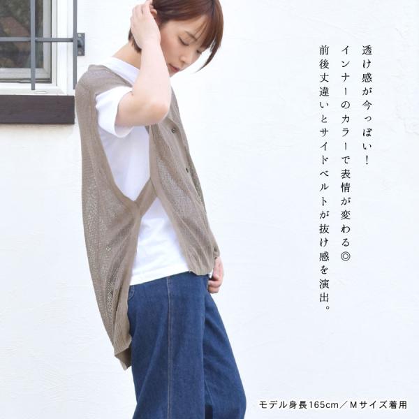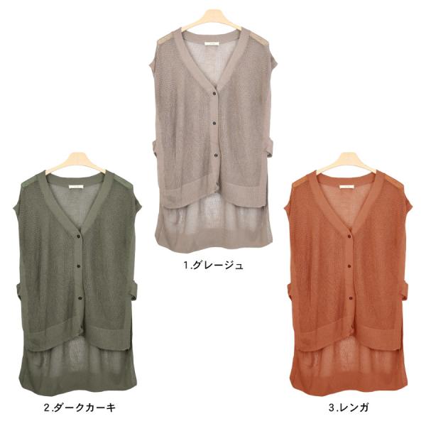 ニットベスト メッシュ 透かし編み ベルト 前後丈違い ベスト ジレ ボタン Vネック レディース トップス